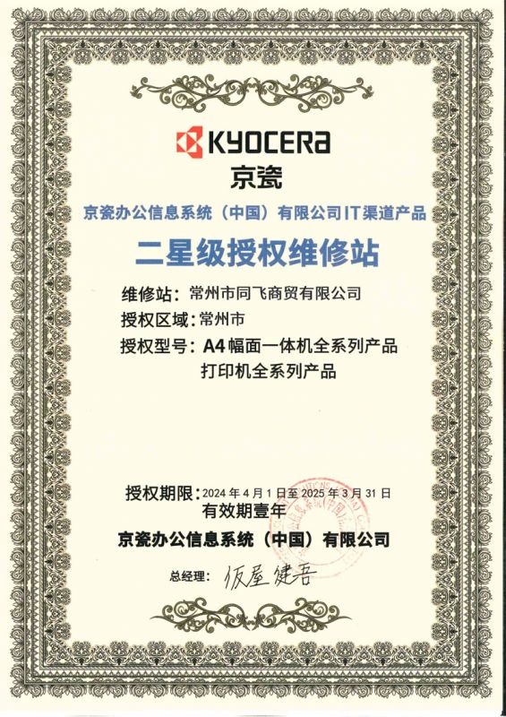 公司取得了日本京瓷復(fù)印機、打印機,映美針式打印機、天威耗材、安興紙業(yè)等眾多知名品牌常州地區(qū)代理權(quán)。